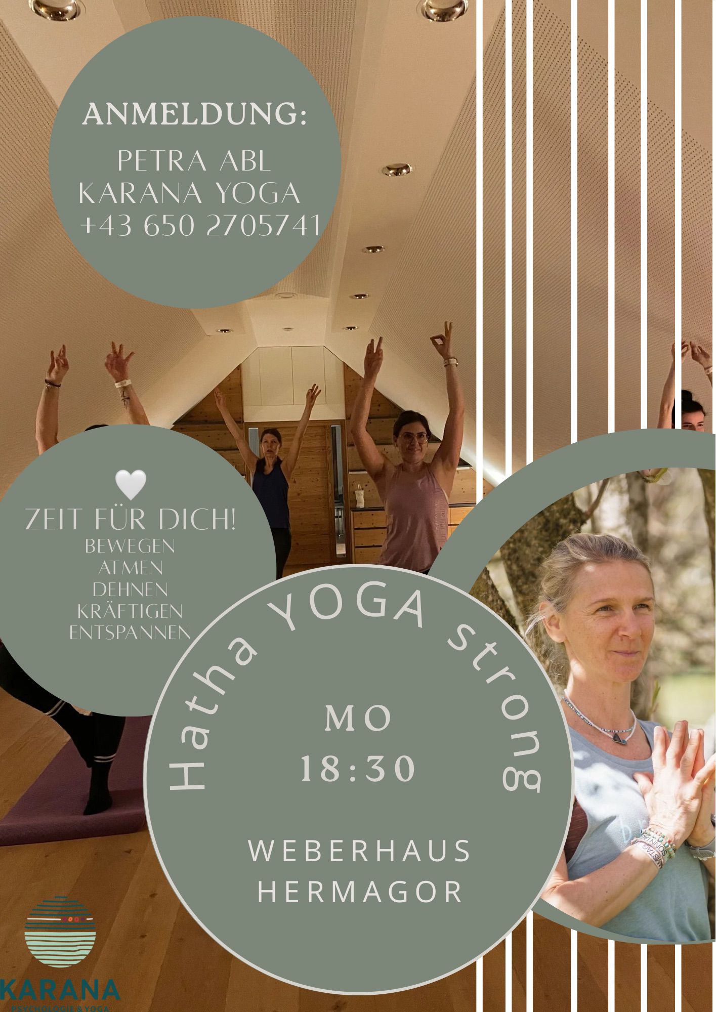 - ab 17.11.2025 immer montags 18:30 – 19:30 Hatha Yoga strong mit Petra Abl